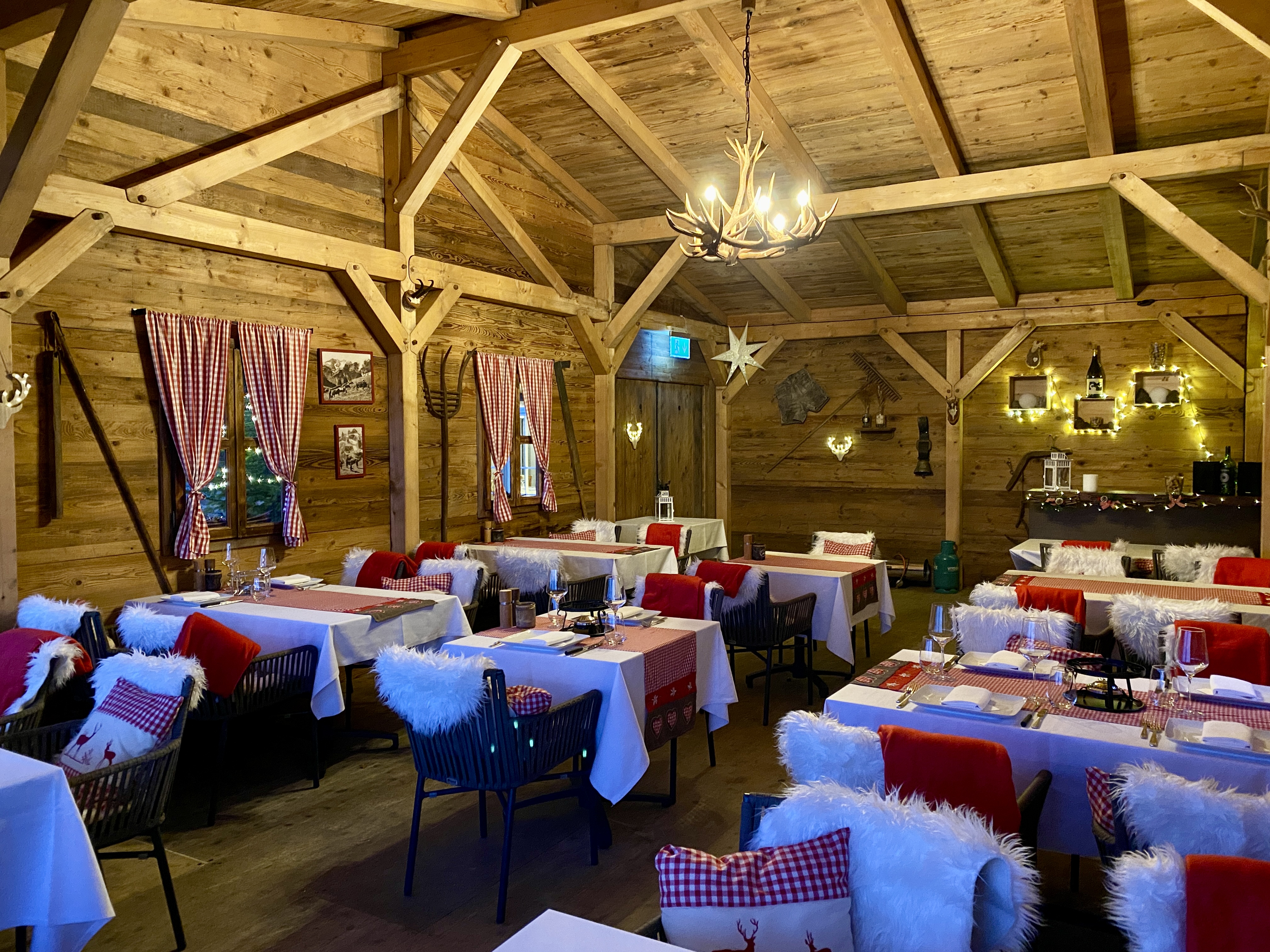 Im gemütlichen und liebevoll eingerichteten Alpenchic-Chalet rühren Gäste genüsslich im Käsefondue und tauchen ihre Fleischhäppchen ins Chinoise-Pfännchen. Die Winterzauber-Atmosphäre ist perfekt für einen romantischen Abend zu zweit, eine gesellige Runde mit Freunden, für Firmenessen oder für eine stressfreie Weihnachtsfeier mit der ganzen Familie.