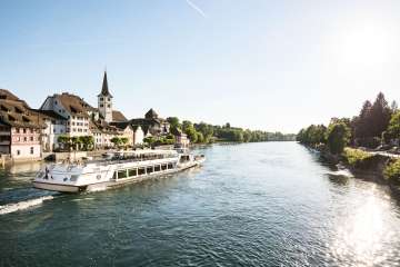 Gemächlich gleitet das Schiff über den Rhein, das Wasser glitzert in der Sonne, und am Ufer ziehen Apfelgärten, Weinterrassen und charmante Dörfer vorbei. Wer hier unterwegs ist, spürt sofort den besonderen Rhythmus dieser Landschaft – ruhig, sanft und wunderbar entschleunigend. Die schönste Stromfahrt Europas verbindet den Bodensee mit Schaffhausen und führt mitten durchs Herz des Thurgaus – ein Erlebnis zwischen Natur, Genuss und Thurgauer Lebensart.