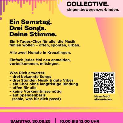 In Kreuzlingen startet ein neues Musikformat: Unter dem Namen «Saturday Sound Collective» findet ein 1-Tages-Chor statt, der Menschen zusammenbringt, um gemeinsam zu singen – offen, ungezwungen und generationenübergreifend. Ein 1-Tages-Chor für alle, die Musik fühlen wollen – offen, spontan, urban.