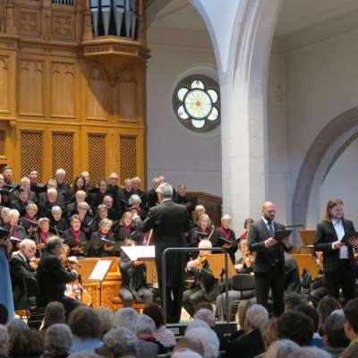 1992 wurde am Karfreitag das Oratorium Christus dargeboten, ein Werk, mit dem Felix Mendelssohn Bartholdy eine Trilogie abschliessen wollte, das aber leider unvollendet blieb. Im ersten Teil, nach einer grossangelegten Choralfantasie über «Wachet auf, ruft uns die Stimme» werden zunächst die Predigt, die Wundertaten und Visionen und schliesslich die Steinigung des Stephanus geschildert. Der Christenverfolger Saulus wütet gegen die Jünger und ihre Anhänger. Auf dem Weg nach Damaskus erscheint ihm jedoch Jesus. Die Jesusworte «Saul, was verfolgst du mich» werden für einen vierstimmigen Frauenchor, fast engelsgleich, komponiert im Dialog mit dem erschütterten Saulus. Nach dreitägiger Blindheit fällt es Saulus «wie Schuppen von seinen Augen», er kann wieder sehen, lässt sich taufen und wird nach tiefgreifender Prüfung ein auserwählter Verkünder der frohen Botschaft der Lehren Christi. Der Chor begleitet diesen wunderbaren Wandel des Saulus zum tief gläubigen Paulus und beschließt den ersten Teil mit der ergreifenden Fuge «Oh welch eine Tiefe des Reichtums, der Weisheit und Erkenntnis Gottes!» Der zweite Teil des Oratoriums wird von einem prächtigen Gotteslob «Der Erdkreis ist nun des Herrn» eröffnet und handelt von der Missionstätigkeit des Apostels Paulus in der hellenistischen Welt. Nun muss Paulus seinerseits Unverständnis, Hass und Verfolgung erfahren, bleibt aber seinem Glauben treu. Der Chor begleitet seinen weiteren Lebensweg einerseits mit so tief berührenden Chören «Wie lieblich sind die Boten, die den Frieden verkünden.» Andrerseits schlüpft er erneut in die Rolle der Verfolger mit dem aufgebrachten, zornigen Chor «Ist das nicht…, weg, weg mit ihm?!» und einem Plädoyer, auch den Apostel Paulus zu steinigen. Paulus durchleidet noch einmal die tragische Verfolgung wie sein Vorgänger Stephanus, allerdings ohne sterben zu müssen. Den Schluss bildet eine klangprächtige Doppelfuge, in welcher die Gerechtigkeit Gottes gegenüber dem Märtyrer Paulus und allen Gläubigen gepriesen wird.