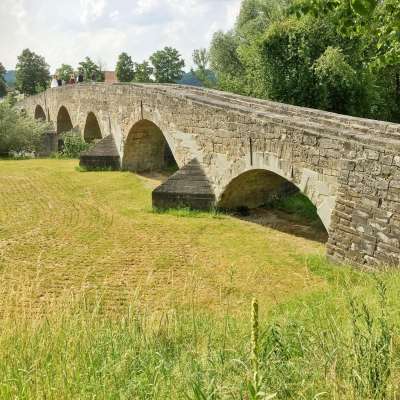 Die achtjochige alte Thurbrücke führt südwestlich des Stadtzentrums von Bischofszell über die Thur und ist die längste, noch erhaltene Natursteinbrücke der Schweiz. Den Namen «krumme Brücke» trägt sie, weil ihr Grundriss einige Knicke hat, damit die Pfeiler auf den Nagelfluhfelsen im Flussbett verankert werden konnten.