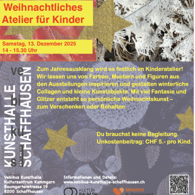 Wir lassen uns von Farben, Mustern und Figuren aus den Ausstellungen inspirieren und gestalten winterliche Collagen und kleine Kunstobjekte. Mit viel Fantasie und Glitzer entsteht so persönliche Weihnachtskunst-zum Verschenken oder Behalten.