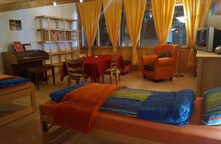 Gäste können zwischen verschiedenen Übernachtungsmöglichkeiten wählen, im ersten Stock der Scheune ist ein Strohlager eingebaut. Frühaufsteher können am nächsten Morgen mit den Hühnern aufstehen und im Stall beim Melken helfen oder den Tag ruhig angehen lassen und mit dem Frühstück beginnen. Das Matratzenlager bietet Platz für bis zu 25 Personen. Dies ist ideal für Vereinsausflüge oder Schulklassen.