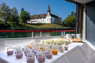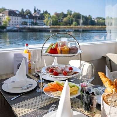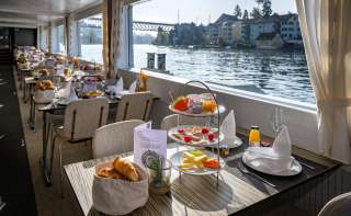 Genussprogramm an Bord. Entspannt an den Brunch-Köstlichkeiten erfreuen. Die variantenreiche Auswahl präsentieren wir Ihnen auf Etageren an ihrem Tisch. Zum Abschluss: Die Dessertvariation! Erleben Sie eine abwechslungsreiche Fahrt – und lassen Sie sich verwöhnen.