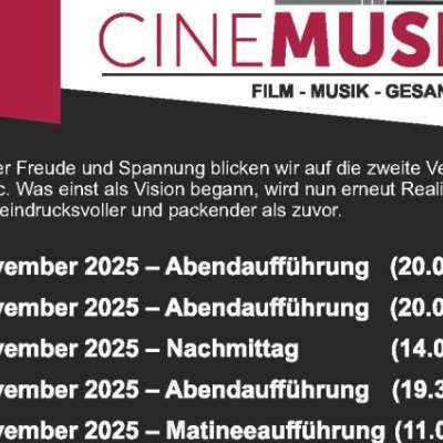 Frauenfeld erwartet ein aussergewöhnliches Konzerterlebnis: Cinemusic 2. Die Stadtmusik Frauenfeld, das Stadtorchester Frauenfeld und der Chrüz&Be Chor Wilen bringen die grossen Momente der Filmmusik live auf die Bühne.