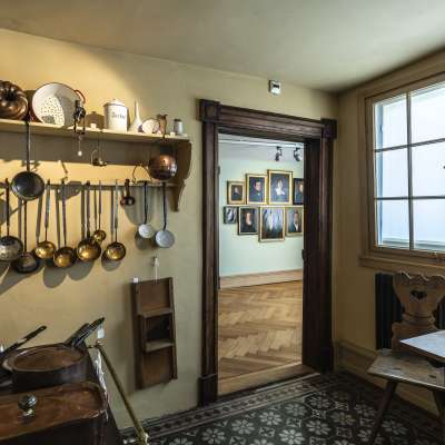 Die ehemalige Küche im Altbau der Rosenegg verfügt über einen schön gefliesten Boden und einen Schüttstein. Der Raum wurde durch einen Herd und zahlreiche historische Utensilien aus dem Museumsbestand neu belebt und erinnert an das vormalige Heimatmuseum. Ein Film aus den 1960er Jahren berichtet sehr unterhaltsam über die «Geschichte der Küche» und nimmt dabei die Aufgaben der Frau genauer unter die Lupe. Auch dieser Beitrag ist bereits ein historisches Dokument.