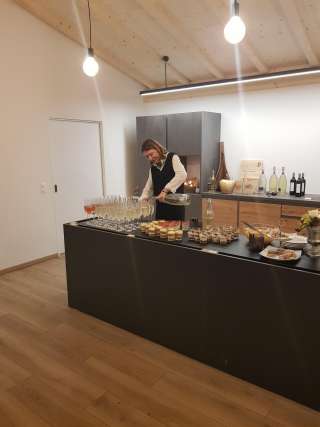 Der moderne Veranstaltungsraum auf dem Engels-Früchtehof bietet Platz für bis zu 70 Personen. Er verfügt über eine erstklassige Ausstattung. Komplette Bestuhlung, grosszügige Tische, Beamerwand mit Beamer sowie Geschirr sind vorhanden. Wer selbst anpacken möchte, dem steht eine tolle Gastroküche zur Verfügung, ausgestattet mit Buffet, Induktionsfelder, Tellerwärmer, Gastro-Steamer, Kühlschrank, Geschirrspüler, Kühltheke, Kaffeemaschine und einer Auswahl an Getränken. Eine attraktive überdachte Aussenterrasse mit malerischem Blick auf den Untersee und die Burg Hohenklingen lädt zum Pausieren und Geniessen ein. Viel Holz schafft ein wohliges Ambiente. Familie Engel bietet in ihrem Hofladen Gemüse und Früchte aus eigener Produktion zur Verwendung an. Ein Apéro mit kalter Platte sowie Dekorationen und Floristik richtet das Familienunternehmen in dritter Generation ebenfalls gerne aus. Auf Wunsch organisiert der Früchtehof für die weitere Verpflegung ein passendes Catering mit einem regionalen Partyservice. Gästen steht es aber auch frei, ihr eigenes Catering mitzubringen.