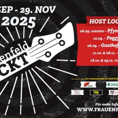 Bei Frauenfeld ROCKT, dem Nachwuchs-Contest zur Förderung der lokalen und regionalen Rockmusik-Szene, wird ab September an sieben Events wiederum ein rockiges Feuerwerk gezündet. Der Contest startet am 6. September im Rahmen der Pfyner Music Night, der Finalabend steigt am 29. November wiederum im KAFF.