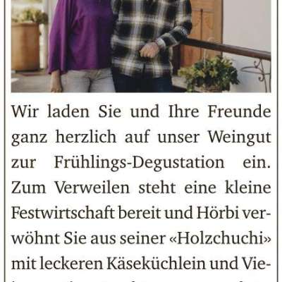 Frühlings-Degustation mit Festwirtschaft am 1. und 2. Mai 2026 von 11.00 - 18.00 Uhr auf dem Weingut Bosch