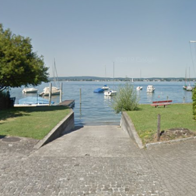 Über einen flachen Zugang zum See erfolgt beim Gupfen-Schlipf in Berlingen der Einstieg mit dem SUP. Beim SUP-Gestell an diesem Standort können die SUPs zwischengelagert werden.