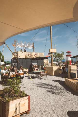 Sein neues Zuhause hat Gustav liebevoll mit Souvenirs von seinen Reisen eingerichtet: Knallig farbige Vintage-Möbel aus Italien verbreiten auf dem Hafenplatz eine fröhliche Stimmung. Ein Gespür fürs Detail hat Gustav auch bei Gaumenfreuden. Ja, er ist ein nachhaltiger Feinschmecker. Eine gesunde und regionale Ernährung ist ihm so wichtig, dass er eigene Salate und Kräuter anpflanzt. Aber bei aller Regionalität bleibt er doch weltoffen: Auf Hawaii hat er die Zubereitung von köstlichen Poké Bowls erlernt, in Südamerika wurde er zum Grillspezialisten und die Briten haben ihn für Fish & Chips begeistert. Unterwegs in der Türkei befasste er sich mit Kaffeebrühen, und seit er in Spanien war, lebt er sein Flair für Cocktails aus. All diese Köstlichkeiten bereitet er für seine Gäste in seinem immer verlässlichen Kahn zu.