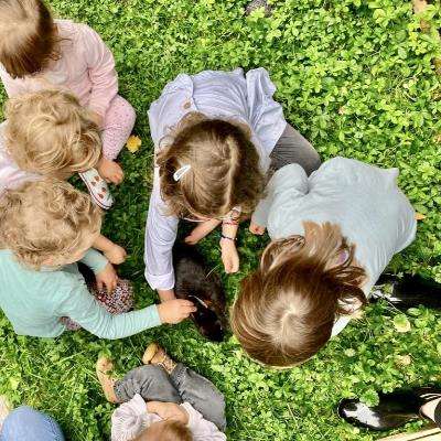 Immer ein fester Programmpunkt: Der Besuch bei unseren Zwergkaninchen und Meerschweinchen im Garten.