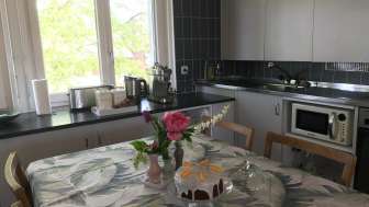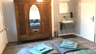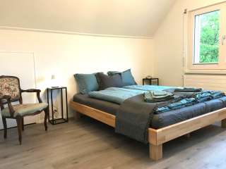 Die Gäste bewohnen die gemütliche Mansarden-Wohnung im Dachgeschoss mit separatem Eingang. Die Wohnung verfügt über einen hellen Wohnbereich mit Alpsteinblick, gratis WLAN, einem Fernseher mit Videogerät, einer offenen, gut ausgestatteten Küche mit Essbereich, zwei grosszügige Schlafzimmer für insgesamt 2 bis 4 Personen mit separatem Waschbecken und Dusche/WC.
