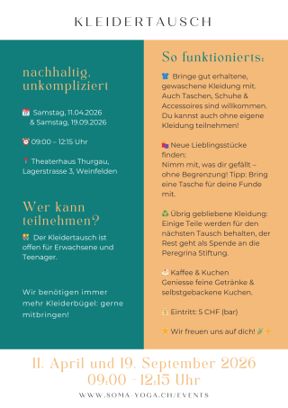👕 Bringe gut erhaltene, gewaschene Kleidung mit. Auch Taschen, Schuhe & Accessoires sind willkommen. Du kannst auch ohne eigene Kleidung teilnehmen!