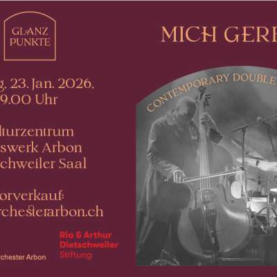 Mich Gerber und sein Kontrabass stehen für moderne Instrumentalmusik, die sofort Bilder im Kopf entstehen lässt: weite Horizonte, stille Landschaften und Momente voller Sehnsucht. Seine Musik hat etwas Filmisches – sie ist atmosphärisch, warm und gleichzeitig geheimnisvoll. Charakteristisch sind die dunklen, schwebenden Klangflächen, über denen melodische Linien auftauchen wie Erinnerungen, die langsam wiederkommen.