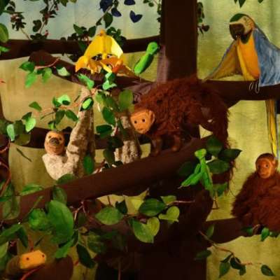 Er streift duch den Urwald, getrieben von seiner Neugier und seinem Nachahmungsdrang. Er trifft das Faultier, das sich kaum bewegt, die fleissigen Ameisen, den Papagei Ara hoch oben im Baum. Da oben beschleicht ihn die erste Ahnung für seine eigene tiefste Freude.
