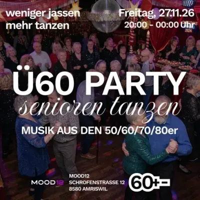 Ab sofort heisst es einmal im Monat am Freitag: Musik aufdrehen, gute Laune mitbringen und gemeinsam den Dancefloor geniessen. Mit DJ, Bar, funkelnder Disco-Kugel und jeder Menge Lebensfreude wird das MOOD12 zur neuen Anlaufstelle für alle tanzfreudigen Ü60-Gäste.