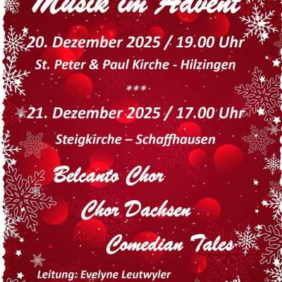 Auch in diesem Jahr laden der Belcanto Chor und der Chor Dachsen zu zwei stimmungsvollen Adventskonzerten ein. Unter der Leitung von Evelyne Leutwyler erwartet das Publikum ein abwechslungsreiches Programm voller Wärme, Klangfarben und berührender Momente.