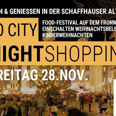 Die Schaffhauser Vereinigung Pro City mit seinen über 200 Mitgliedern aus Gewerbe, Gastronomie und Dienstleistern, belebt die Innenstadt auch dieses Jahr in der Weihnachtszeit mit Events und Attraktionen. Am Freitag den 28. November findet das traditionelle Nightshopping statt. Viele Geschäfte haben bis um 22 Uhr geöffnet und bieten ihren Gästen ihre Produkte und Dienstleistungen an. Viele mit tollen Rabatten, Aktionen und Schnäppchen, denn am 28. November ist auch Black-Friday.