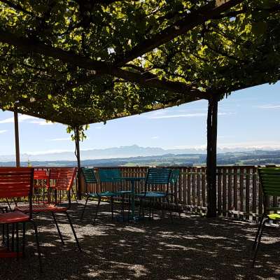 Das Rebgut Sunnehalde liegt an schönster Lage am Ottenberg inmitten der Weinreben. Die Pergola und das unvergleichliche Panorama vom Hohen Kasten über den Säntis bis hin zu den Berner Alpen laden die Besucher zum Verweilen ein.