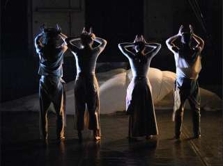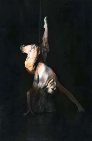 Transparente Stoffe, Lichtinstallationen und feine Nebelschleier erzeugen eine Atmosphäre, die die Tänzerinnen in ein diffuses, ständig wechselndes Umfeld taucht.