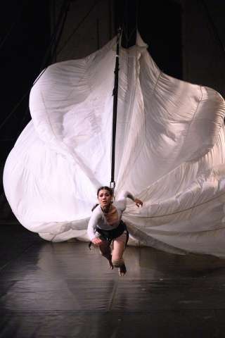 Das spartenübergreifende Stück vereint zeitgenössischen Tanz, Luftakrobatik und schauspielerische Elemente. In schwebenden Seilinstallationen erforschen die Performerinnen die Welt des Dazwischen-Seins. Transparente Stoffe, Lichtinstallationen und eigens komponierte Musik schaffen eine atmosphärisch dichte, visuelle Poesie.