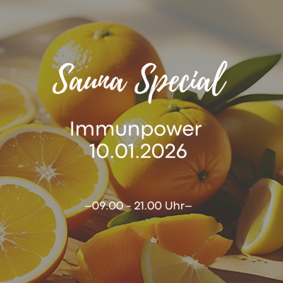 Der Saunaevent Immunpower verbindet gezielte Wärme, ausgewählte Kräuter, Dampf und Ruhe zu einem stimmigen Erlebnis für Körper und Atem. Rituale, Aufgüsse und Hammams unterstützen das Immunsystem, fördern die Durchblutung und helfen, loszulassen und neue Kraft aufzubauen.