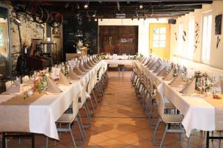 Wo urchige Steinwände auf moderne Technik, Kunstwerke auf gastronomische Highlights und Bestehendes auf individuell Wandelbares treffen, feiern Gäste bis sich die Eisen biegen. Ob für eine Geschäftsfeier, eine Hochzeit oder einen Geburtstag, die Schmitte bietet Platz für 10 bis 60 Gäste.