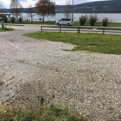 Auf dem Parkplatz der Badi Steckborn, in Sichtnähe des Bodensees, sind sechs Ganz-Jahres-Stellplätze eingerichtet.