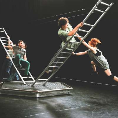 Mit «Beyond» zeigt das Migros-Kulturprozent Tanzfestival Steps eine dynamische, berauschende und poetische Zirkus-und Tanzperformance des belgischen Ensembles Circumstances. Sechs Performerinnen und Performer erforschen und testen Grenzen, um sie schliesslich gemeinsam zu überwinden. Sie sind Expertinnen und Experten unterschiedlicher Disziplinen, von Tanz über Akrobatik bis Poledance. Mithilfe von unterschiedlich grossen Leitern kreieren sie füreinander ein dynamisches und instabiles Spielfeld, das gemeinsam erkundet wird. Sie tanzen, klettern, schweben und riskieren alles. Miteinander tasten sie sich an ihre eigenen und kollektiven Grenzen heran und untersuchen spielerisch, wie weit sie gehen können. Dabei spielt das Bühnenbild eine zentrale Rolle: Leitern werden zu aufregenden Mitspielerinnen, aber auch zu einem starken Symbol der Verbindung. Damit greift «Beyond» ein omnipräsentes Thema auf: Wie lassen sich Brücken bauen und Grenzen überwinden?