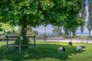 Im grossen Garten mit vielen Obstbäumen gibt es einen vielfältigen Spielplatz und Tiere laden zum Verweilen ein. Hier können Wanderer und Velofahrerinnen vom Bodenseeweg verschnaufen, im Hofladen eine regionale Köstlichkeit einkaufen und den Alltag vergessen. In einem kunterbunten Durcheinander von Spielsachen tollen die kleinen Gäste herum und bauen Sandburgen. Blökende Ziegen lieben es gestreichelt zu werden und hoppelnde Hasen warten auf einen Löwenzahn aus Kinderhand.