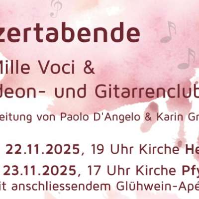Der Coro Mille Voci und der Akkordeon- und Gitarrenclub Pfyn präsentieren ein abwechslungsreiches Programm mit schwungvollen Melodien und warmen Klängen – ganz im Zeichen des gemeinsamen Singens und Musizierens.