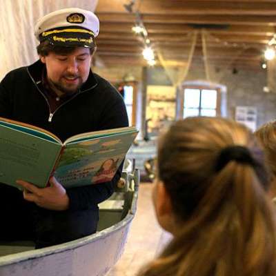 Kulturvermittler Julian Fitze und Autorin Katrin van 't Hoff erzählen Geschichten vom Nebelmännchen, mutigen Fischerinnen und dem erlebnislustigen Wassertropfen Bodi.