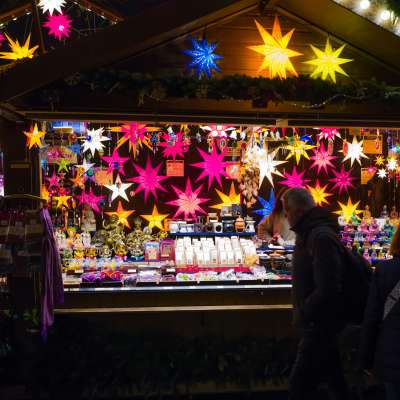 Weihnachtsgeschenke einkaufen. Weihnachtliche Darbietungen ergänzen das stimmungsvolle Ambiente.