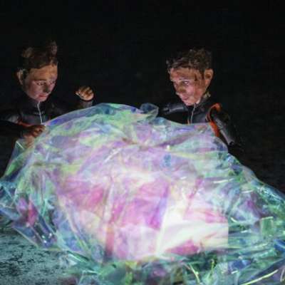 Die wundersame Reise für Menschen ab 5 Jahren wird mit Figurenspiel und Live-Kamera inszeniert. Die Live-Kamera ist hier ein Werkzeug, um das Zauberhafte aus dem Alltäglichen herauszuholen. So wird eine kleine Pfütze zum Meer, aus Furchen im Sandkasten wird ein gepflügter Acker und aus einem bunten Eimer der Sonnenuntergang.