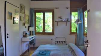 Im Herzen des Thurgaus, am Fusse des Ottenbergs, liegt Weinfelden. Wie der Name schon sagt, wird hier Wein produziert – sehr guter noch dazu. Das Städtchen mit seinen vielen Riegelhäusern ist klein und süss und guter Ausgangspunkt in alle Richtungen des Thurgaus. Das Bed & Breakfast «Rosenstrasse» bietet zwei liebevoll eingerichtete Zimmer an ruhiger, zentraler Lage mit separatem Eingang, wo ein kleines Biotop mit Sitzplatz grüsst. Die Wohnung verfügt über eine kleine Küchenzeile ohne Herd. Toilette und Dusche werden gemeinschaftlich genutzt. Ins Dorfzentrum oder an den Bahnhof sind es nur 5 Minuten zu Fuss. Ab hier startet auch der Weinfelder Weinweg, der den Weinbau und die edlen Tropfen der Region aus einem Weinsafe erlebbar macht. In 40 Minuten ist der Flughafen Zürich mit dem Zug erreichbar. An den Bodensee oder ins Deutsche Konstanz geht’s in 20 Minuten ab Weinfelden.