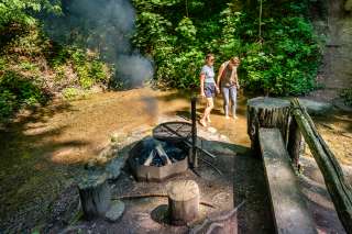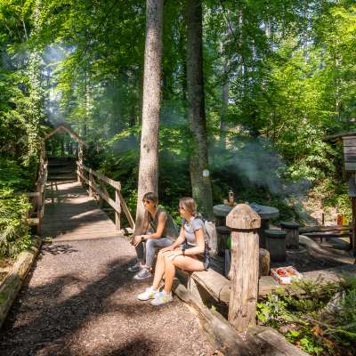 Im schattigen Blauhölzliwald in Häggenschwil lässt es sich bei heissen Temperaturen besonders gut Verweilen, denn ein Bach lädt zur Erfrischung ein. Gleich nebenan befindet sich die Feuerstelle mit Tisch und Bank sowie ein Spielplatz zum Austoben. Für Familien mit Kindern ist dieser Zwischenstopp auf einer Velotour ein Muss.