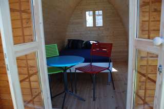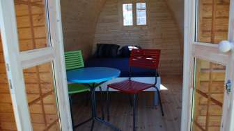 Neu steht ein kleines Holzhaus, ein sogenanntes Pod, im Angebot. Die Einrichtung umfasst ein Bett mit 1.40 Meter breiter Matratze für zwei Personen und ein Tischchen mit zwei Stühlen. Das Häuschen ist als Zeltersatz für Velotouristen gedacht, die nicht zu viel Gepäck dabei haben möchten – ein Schlafsack genügt. Hunde sind auf dem Campingplatz erlaubt.