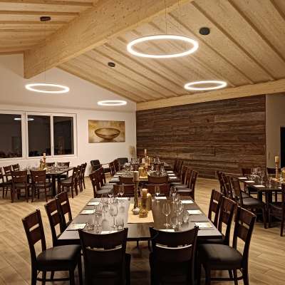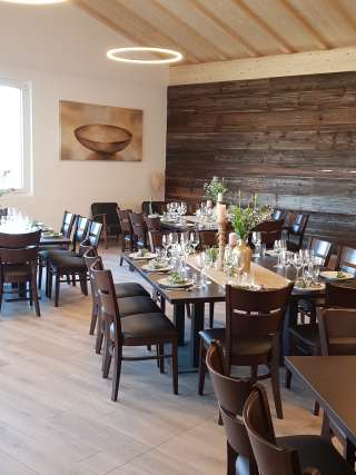 Der moderne Veranstaltungsraum auf dem Engels-Früchtehof bietet Platz für bis zu 70 Personen. Er verfügt über eine erstklassige Ausstattung. Komplette Bestuhlung, grosszügige Tische, Beamerwand mit Beamer sowie Geschirr sind vorhanden. Wer selbst anpacken möchte, dem steht eine tolle Gastroküche zur Verfügung, ausgestattet mit Buffet, Induktionsfelder, Tellerwärmer, Gastro-Steamer, Kühlschrank, Geschirrspüler, Kühltheke, Kaffeemaschine und einer Auswahl an Getränken. Eine attraktive überdachte Aussenterrasse mit malerischem Blick auf den Untersee und die Burg Hohenklingen lädt zum Pausieren und Geniessen ein. Viel Holz schafft ein wohliges Ambiente. Familie Engel bietet in ihrem Hofladen Gemüse und Früchte aus eigener Produktion zur Verwendung an. Ein Apéro mit kalter Platte sowie Dekorationen und Floristik richtet das Familienunternehmen in dritter Generation ebenfalls gerne aus. Auf Wunsch organisiert der Früchtehof für die weitere Verpflegung ein passendes Catering mit einem regionalen Partyservice. Gästen steht es aber auch frei, ihr eigenes Catering mitzubringen.