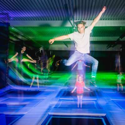 Trampoline, ein Mini-Fussballfeld, Elektroautos, Ballkanonen und eine