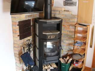 Im Parterre des Ferienhauses befindet sich eine gut eingerichtete Wohnküche mit Schwedenofen und Fernseher. Das WC mit Dusche liegt auf derselben Etage. Im 1. Stock befinden sich zwei zusammenliegende Einzelbetten und ein Bett-Sofa.