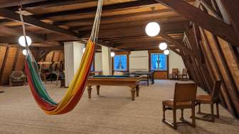 Das Schlössli Herrenhof in Langrickenbach wurde im 18. Jahrhundert als Sitz einer einflussreichen Familie erbaut, verfiel aber nach einigen Besitzerwechsel zunehmend. Eine Kreuzlinger Unternehmerfamilie erwarb und päppelte es wieder auf. Heute steht Schloss Herrenhof als Veranstaltungsort und prachtvolle Unterkunft Gästen zur Verfügung. Im Haupthaus gibt es fünf Doppelzimmer, eines davon im Dachgeschoss mit Blick auf den Bodensee. Der historische Kartoffelkeller eignet sich für Feste wie Hochzeiten oder Geburtstagspartys mit besonderem Ambiente. Ein riesiger Kamin (es darf gegrillt werden) und historische Einrichtung mit viel Holz erzeugen eine gemütlich rustikale Atmosphäre. Gaming-Raum mit Tischtennis, Billard und weiteren Spielen sowie ein riesiger Garten mit Gasgrill und viel Privatsphäre vervollständigen den Freizeitspass. Für zehn zusätzliche Gäste im Massenschlag bietet das Nebengebäude Platz. Im Erdgeschoss wohnen die Gastgebenden. Dennoch bleiben 600 Quadratmeter im Schlössli zur alleinigen Nutzung der Gäste.