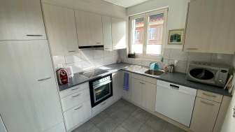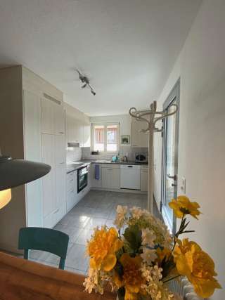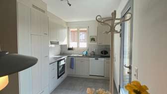 Die Gastgeber sind zwei humorvolle, offene und hilfsbereite Personen, die im selben Gebäude wohnen. Der separate Eingang über eine Aussenwendeltreppe führt direkt in die gemütliche und gut ausgestattete Wohnküche. Dort stehen ein Mikrowellengerät sowie eine Kapselkaffeemaschine mit einer Auswahl an Kapseln pro Übernachtungstag zur Verfügung. Es gibt auch eine Auswahl an Gewürzen, Tee, Essig und Öl.