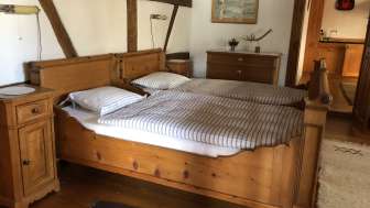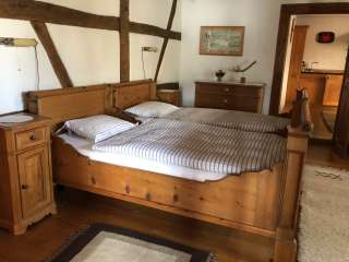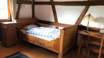 Die 2.5-Zimmerwohnung bietet Platz für 2–3 Personen, die 3.5-Zimmerwohnung für 4–5 Personen. Die Wohnungen liegen im ersten Stock des schmucken, renovierten Riegelhauses. In der Küche befindet sich ein Esstisch. Das ganze Haus ist mit Granderwasser ausgestattet.
