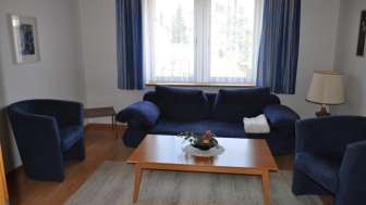 Die Wohnungen beinhalten je 2 Schlafzimmer mit je 2 Betten. Das Wohnzimmer ist mit einem Fernseher ausgestattet. In den Wohnungen befinden sich auch Dusche/WC und eine Küche mit Esstisch. Es sind Waschmaschine und Tumbler vorhanden.