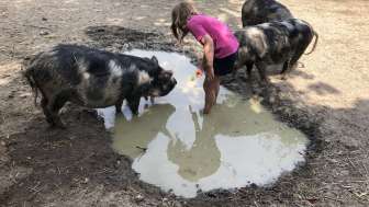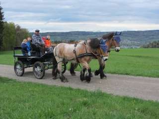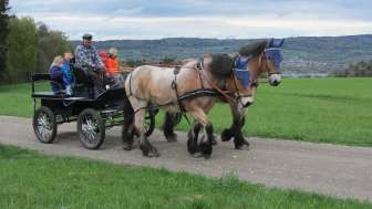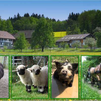 Pferde, Esel, Walliser Schwarznasenschafe, Kune-Kune-Schweine und Katzen machen den Hof zu einem lebendigen Ort, an dem Landwirtschaft hautnah erlebbar wird. Kinder können Esel striegeln, mit ihnen Spaziergänge durch den Wald unternehmen oder beim Versorgen der Tiere mithelfen. Die wolligen Schafe lassen sich gerne kraulen, während die Schweine für heitere Momente sorgen. Ein besonderes Erlebnis ist eine Kutschenfahrt mit den imposanten Kaltblutpferden, die eindrucksvolle Ausblicke eröffnet.