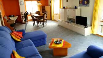 Die Wohnung ist mit einem Doppel- und einem Zweibettzimmer, sowie einer Küche und Bad ausgestattet. Raumhöhe 2.05 Meter. Auf dem Gartensitzplatz hat es einen Grill. Ebenfalls in der Wohnung befindet sich ein Hometrainer, Radio, TV, WLAN. Neben einem Parkplatz hat es auch einen Velounterstand.