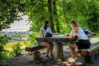 Bräteln mit Weitsicht? Von der Feuerstelle Weiherholz in Roggwil aus bietet sein ein sagenhafter Ausblick auf den Bodensee. Tisch und Bank laden zum gemütlichen Beisammensein und Verweilen ein. Fürs Einfeuern steht Holz bereit. Der schattige Wald bietet sich zudem für eine erfrischende Pause von der Velotour an.
