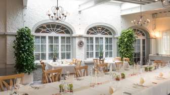 Im Wintergarten ist Platz für bis zu 60 Personen für Gesellschaften und Familienfeiern.