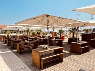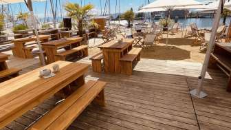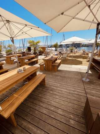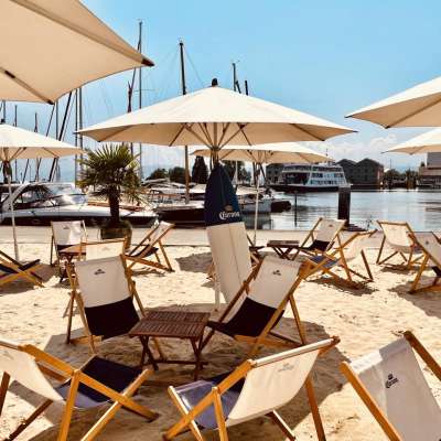 Direkt am Fährhafen von Romanshorn können die Gäste in der Hafenlounge auf einem der bequemen Strandstühle die einfahrenden Schiffe beobachten und erhalten obendrauf eine grandiose Aussicht auf die Bergketten des Alpsteins. Hier kann man von April bis September im Beachsand, in einer gemütlichen Lounge, oder auf einem der 200 weiteren stilvollen Sitzplätze einen kühlen Drink geniessen und entspannen. Kulinarisch verwöhnt werden die Gäste mit den regionalen und frisch zubereiteten Speisen direkt vom Grill.